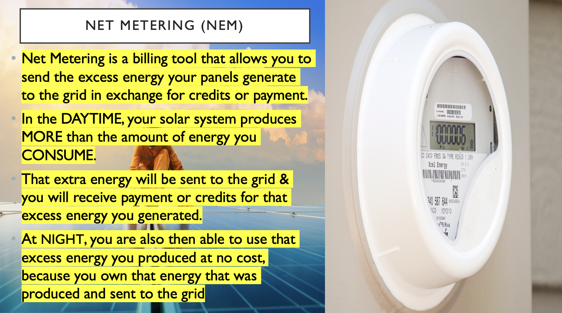 When your solar panels produce more energy than your home uses, that extra power gets sent back to the grid. Through Net Energy Metering (NEM), your utility company gives you credits for that excess energy—lowering or even reversing your electric bill. In some cases, if your system produces more than you use over time, you can get paid for the surplus. It’s like turning your roof into a money-making machine.