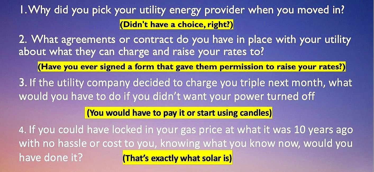 Progress Eliminate Your Electric Bill Complete & Continue Next Lesson Learn More Chapter 1 - Why Go Solar? 3 Lessons Lesson 1: How Does Solar Work? Lesson 2: Why Homeowners Are Going Solar Lesson 3: Get PAID By The Utlity Chapter 2 - Utility vs Solar 2 Lessons Lesson 1: Utility vs Solar Lesson 2: Escape The Utility Monopoly Chapter 3: Solar Savings & ROI 2 Lessons Lesson 1: How Solar Saves You Money Lesson 2: How Solar Strengthens Your Financial Portfolio Eliminate Your Electric Bill Complete & Continue Next Lesson Learn More Chapter 2 - Utility vs Solar Lesson 2: Escape The Utility Monopoly